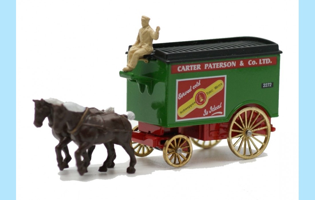 Made in England by Lledo this Horse Drawn Removal Van in the livery of 'Carter & Patterson' and carrying a 'Schweppes Tonic' advertisement is one of the 'Days Gone' model range produced in 1993