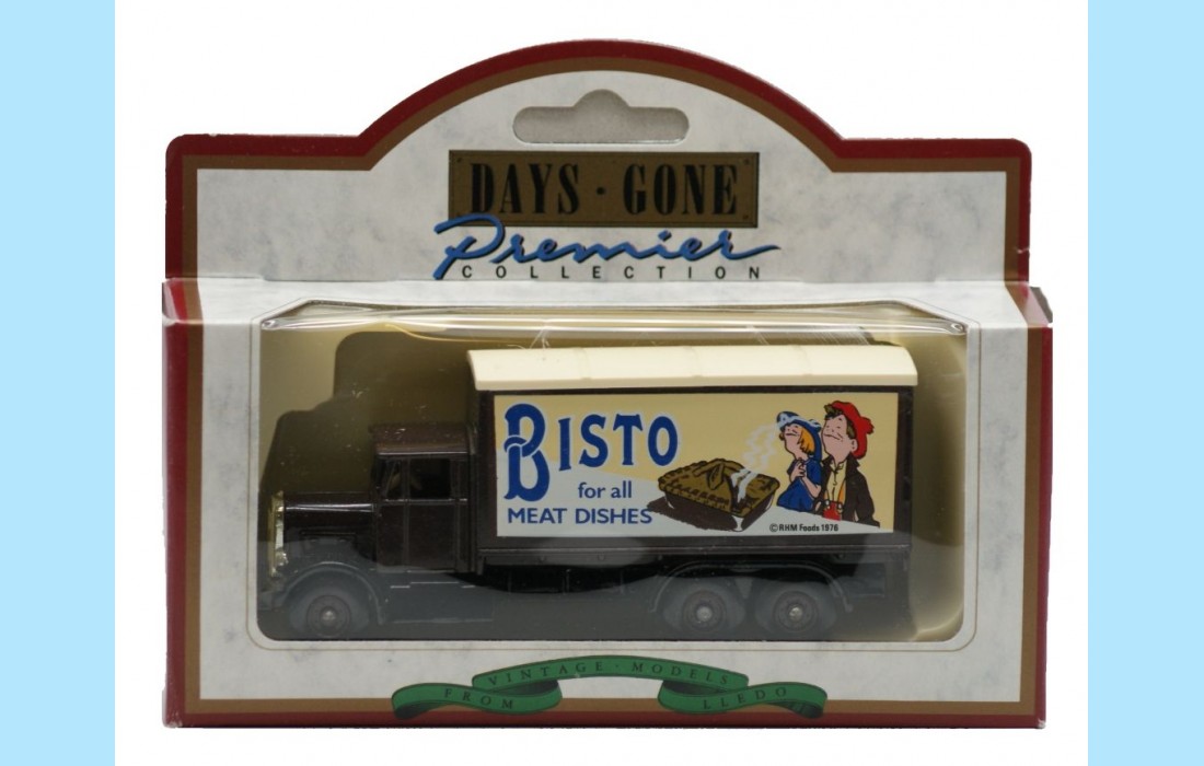 Made in England by Lledo this 1937 Scammel 6 Wheeler Truck in the livery of 'Bisto' (RHM Foods) is one of the 'Days Gone Premier' model range produced in 1990
