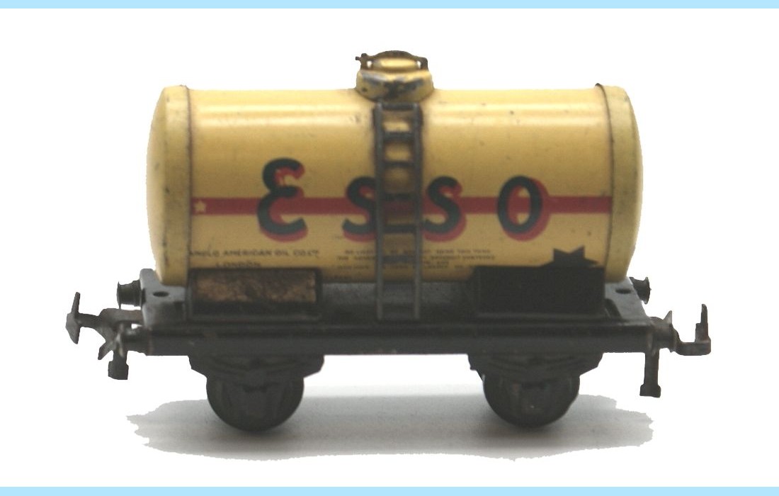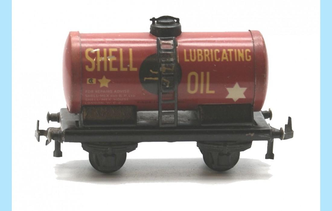 Manufactured in England by Trix Trains these 1951 issue Tank Wagons are in very good condition. Extremely rare to find the four together they consist of numbers 640 ESSO (Yellow), 641 ESSO (Silver) 643 SHELL (Red) and 644 SHELL (Silver). All are suitable for both 2 or 3 rail