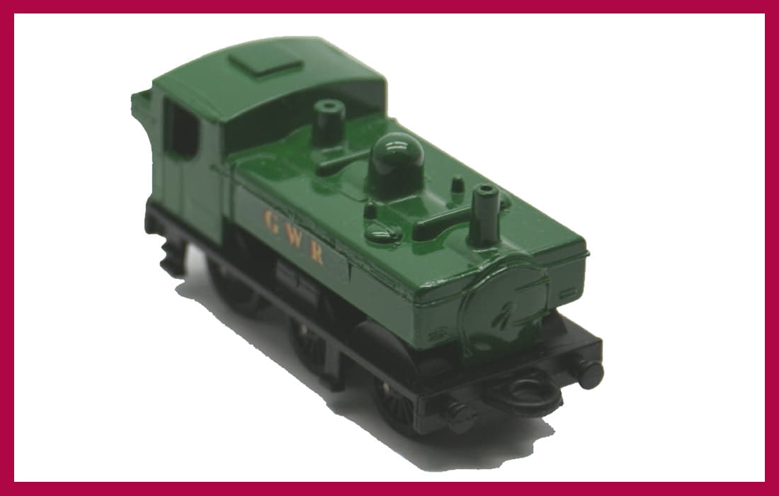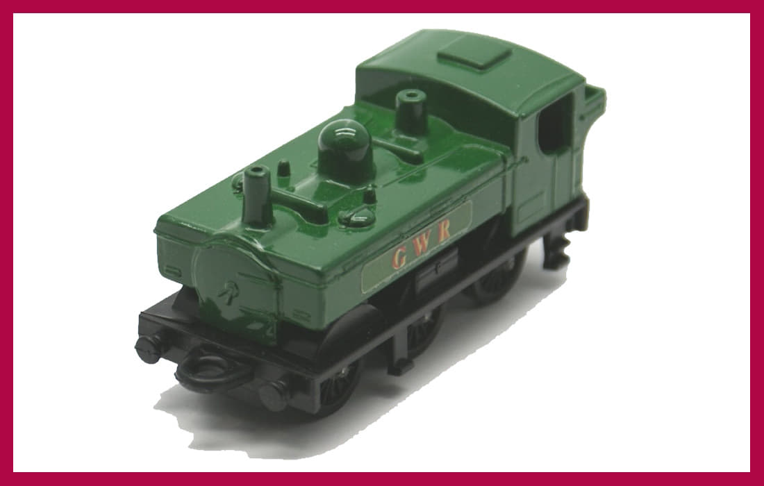 in England by Lesney and produced between 1979 and 1981 other than some pre-production models this Pannier Tank Locomotive was only ever released in Green with Black underbody. The decals will generally read 'G.W.R.' although there are some Code 2 variants to be found.